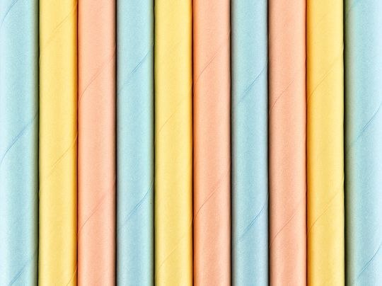 Słomki papierowe Summer time, mix kolorów (turkusowy - 4 szt., żółty - 3 szt., brzoskwiniowy - 3 szt.), długość ok. 19,5 cm.