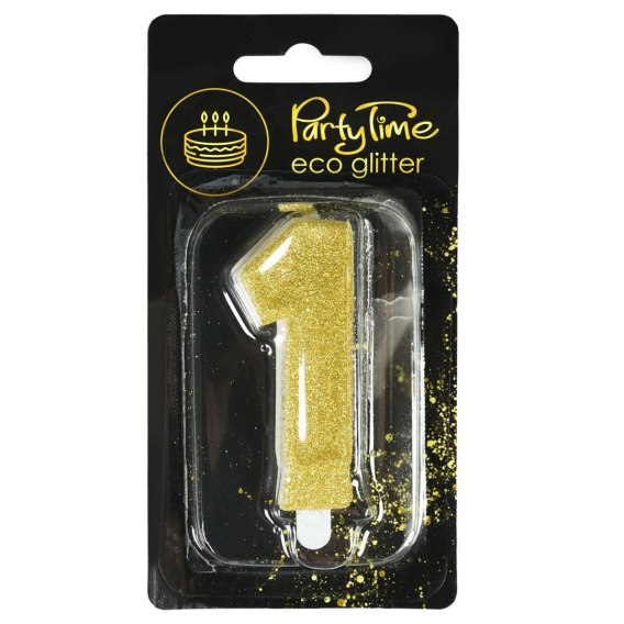 Świeczka cyferka z eko-brokatem nr 1