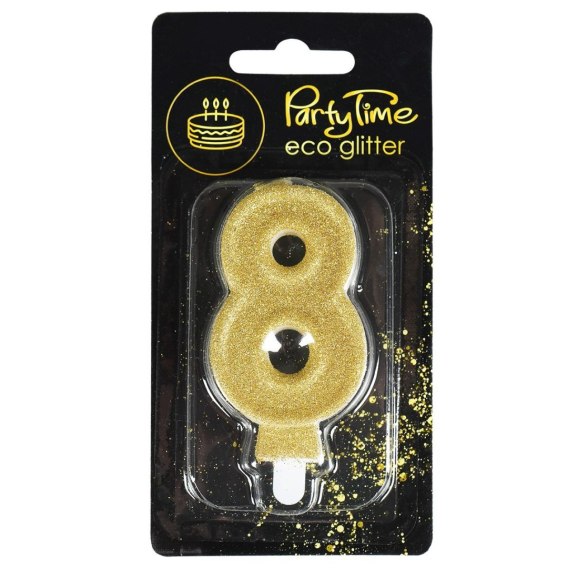 Świeczka urodzinowa eko brokat złota cyfra 8 Arpex (DS0963ZLO-8-0987)