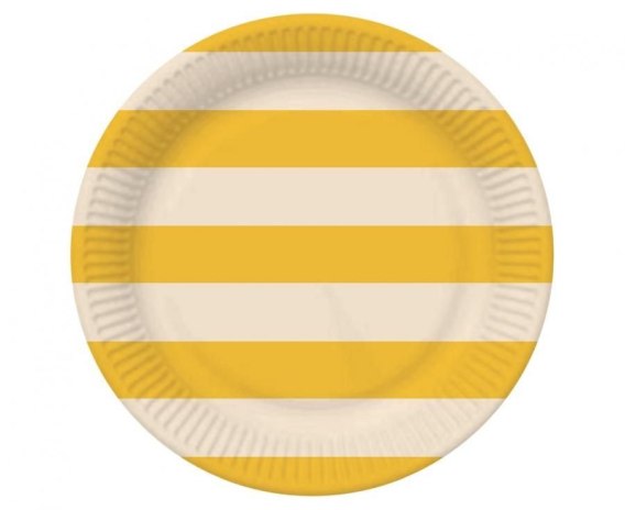 Talerz jednorazowy paski żółty papier śr. 180mm 6 szt Godan (PG-TPA1)