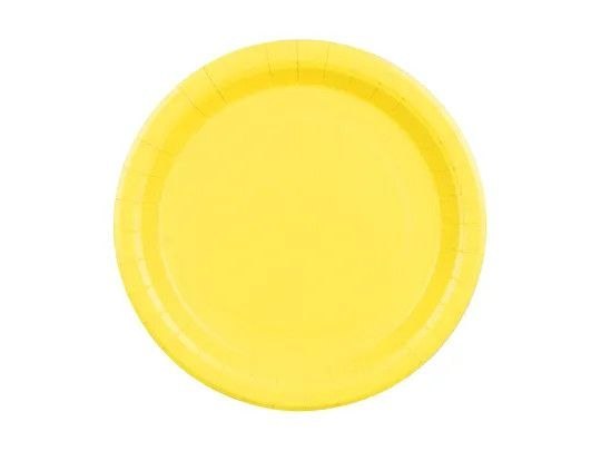 Talerzyki papierowe okrągłe w kolorze żółtym, średnica ok. 23 cm.
