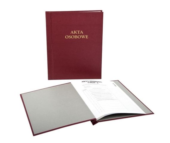 Twarda okładka wykonana z tektury introligatorskiej i złotym napisem. Wewnątrz zawiera wkłady wymagalne przez przepisy państwowe: ABCDE. Za każdym wkładem znajduje się podkładka i metalowy wąs, służący do wpinania dokumentów. Wąs należy odchylić i nałożyć na niego uprzednio przedziurkowane kartki, bądź kartki włożone w koszulkę na dokumenty. Teczka na akta osobowe służy do magazynowania dokumentów osobowych pracowników firmy.
