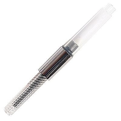 -Duży Tłoczek na atrament z mechanizmem obrotowym do piór wiecznych. Tłoczek (konwerter) to mały mechanizm do napełniania atramentem piór wiecznych. Używany zamiennie z nabojami atramentowymi. Rozmiar ? uniwersalny, średnica napełniania (wew.) to 2,6mm Stosowanie ? końcówkę tłoczka zanurzyć w atramencie. Następnie obracając jego drugi koniec napełnić zbiorniczek atramentem. Na koniec napełniony tłoczek włożyć do pióra jak zwykły nabój atramentowy