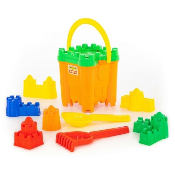 Bogaty zestaw do piasku z pomysłowym wiaderkiem-twierdzą.