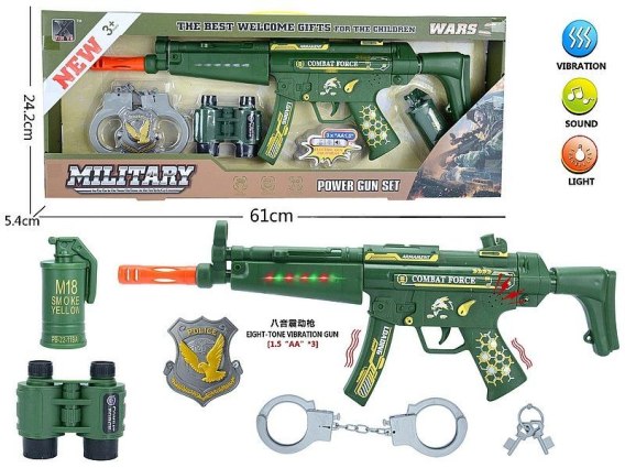 Zestaw wojskowy, z karabinem na baterie, światło, dźwięk, wibracje; 61x24x5,5cm, W/B